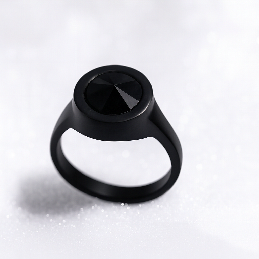 Make a powerful impression with this Black Faceted Statement Ring, crafted for those who value sleek design and subtle luxury. Featuring a raised, multi-faceted top set in a smooth matte band, this ring blends modern minimalism with timeless sophistication.