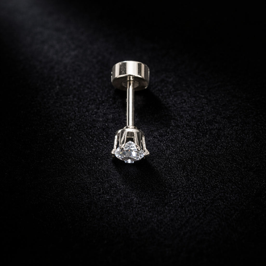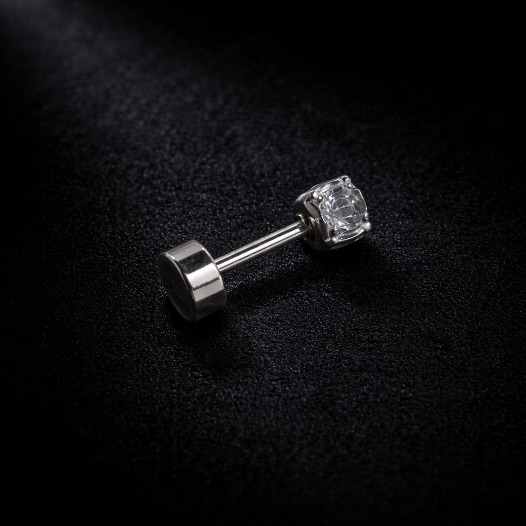 Elevate your style with this sleek and modern men’s barbell stud earring, crafted for a bold yet refined look. Featuring a brilliant-cut stone set in a polished metal frame, this piece delivers a perfect balance of minimalism and luxury.