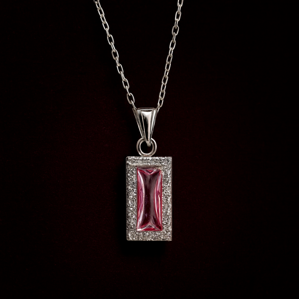 Elevate your style with this striking pendant necklace, designed to blend timeless elegance with modern charm. Featuring a deep red, emerald-cut gemstone framed by a halo of shimmering clear stones, this piece adds a touch of luxury to any outfit. Suspended from a delicate silver-toned chain, it’s perfect for festive occasions, romantic evenings, or everyday sophistication.