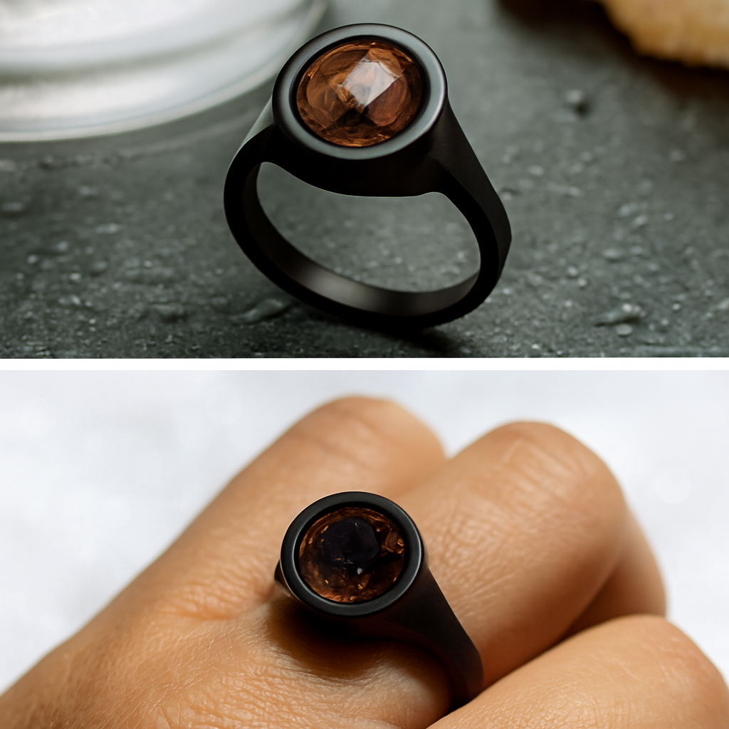 Set against a soft, snow-like backdrop, this ring evokes a sense of quiet confidence and refined taste. Whether paired with casual streetwear or formal attire, it adds a touch of understated elegance to any look.