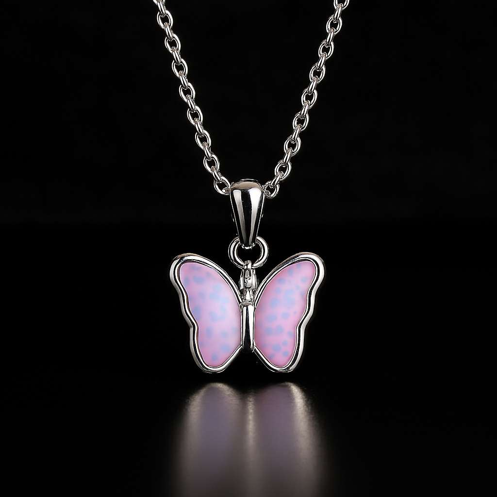 • Butterfly-shaped pendant with luminous, color-shifting wings
