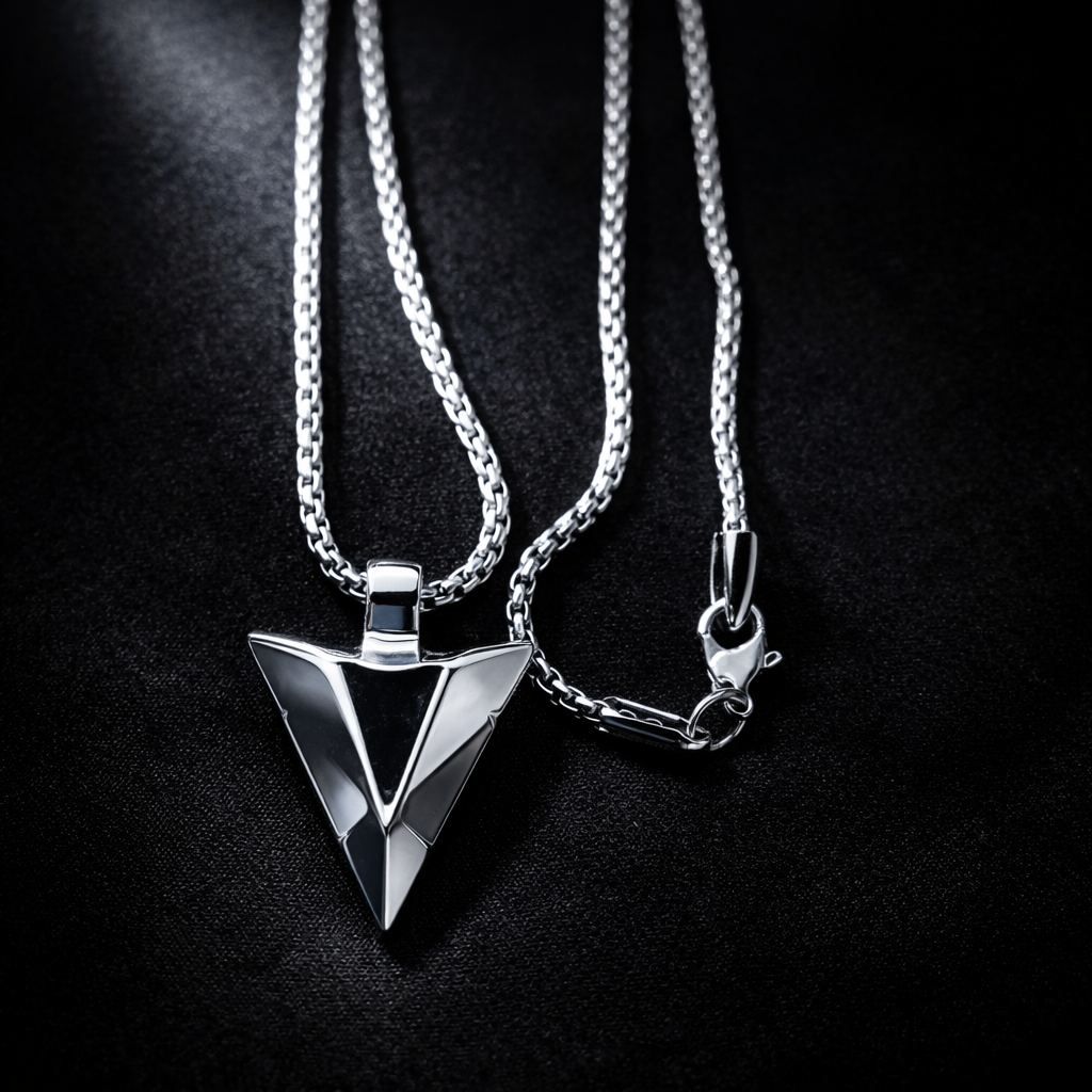 Make a bold statement with this striking arrowhead pendant, crafted for men who embrace strength and individuality. Designed with sharp geometric lines and a sleek metallic finish, this piece reflects power, direction, and confidence.