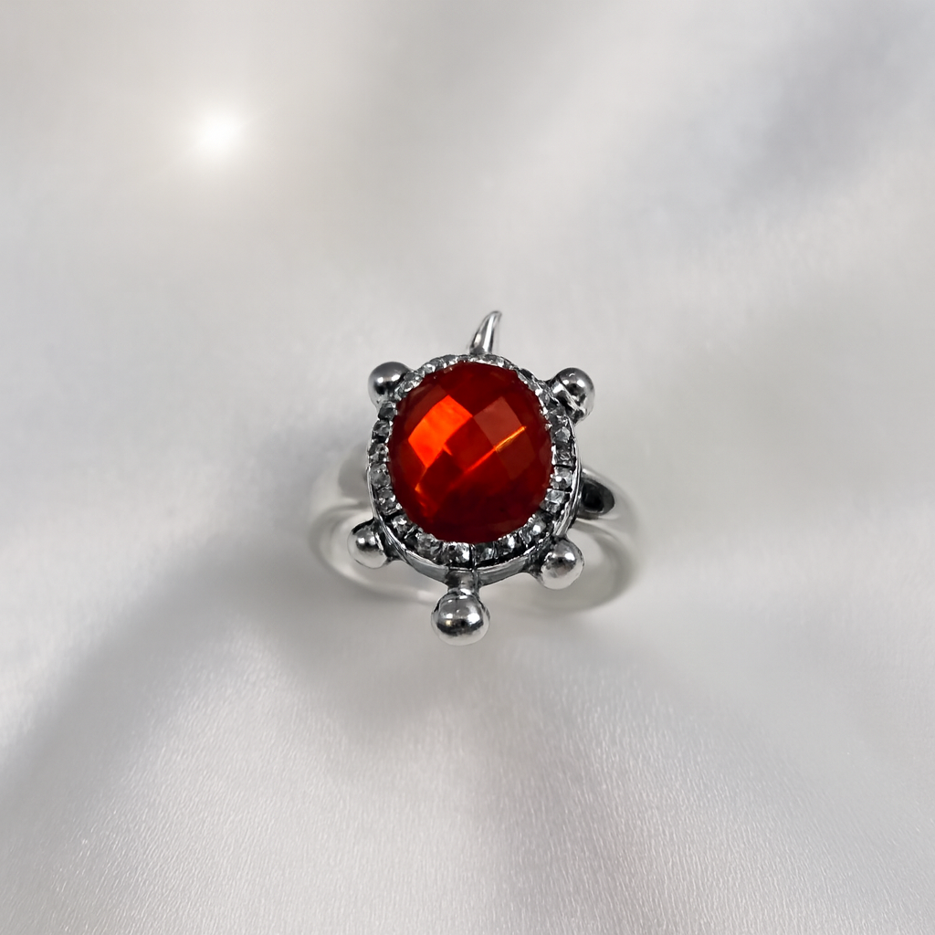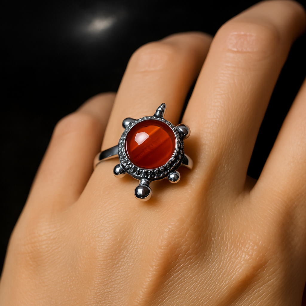 Elegant Silver Ring with Orange Gemstone – Ornate Vintage Design
